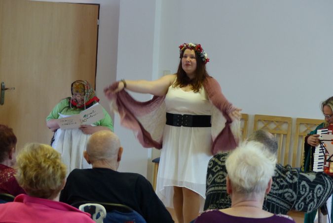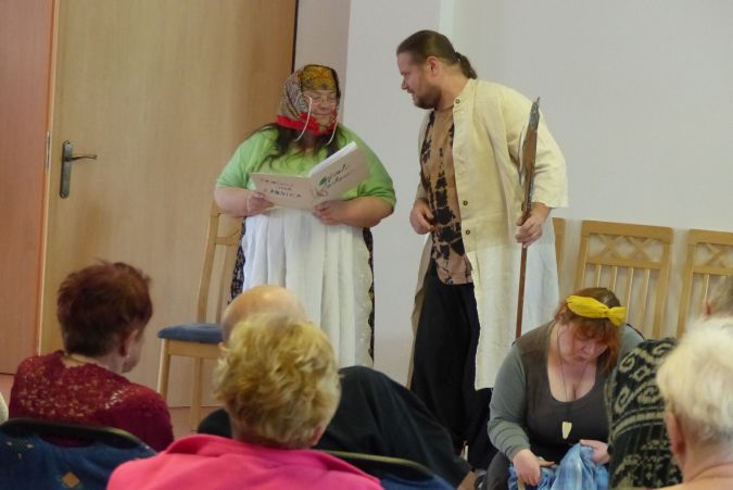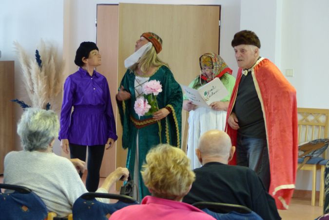 V neděli 8. 5. 2022 zavítal do našeho domova divadelní soubor Kvítko z Mladoňovic, aby zpestřil našim klientům sváteční odpoledne. Připravili si hru Bývali Čechové, která pojednávala o Starých pověstech českých. Takže jsme se mohli setkat s kněžnou Libuší, Bivojem, který si s sebou přinesl divočáka.
