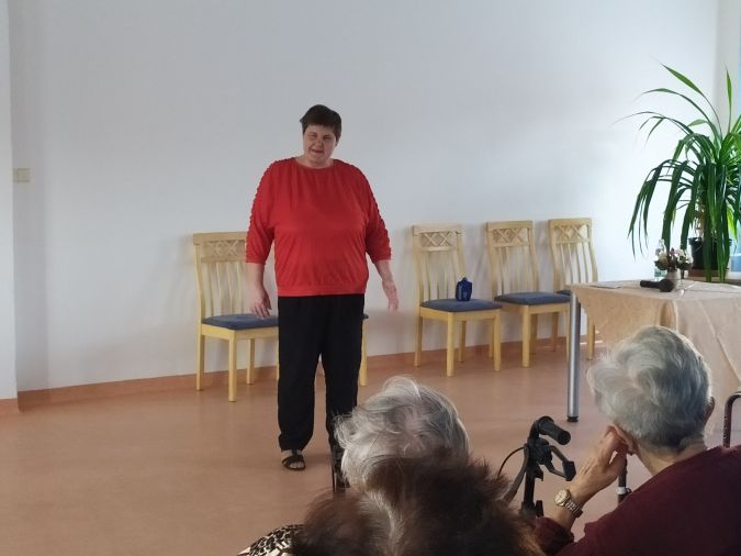 Písničky z pohádek v podání zpěvačky Moniky Maškové z Předhradí rozeznívaly ve čtvrtek 3. 11. 2022 naši společenskou místnost. Ta nepřijela sama, ale doprovodil ji její vodící pes Caesar, kterého si mohli posluchači pohladit, a zároveň se mohli něco dozvědět o tom, jak se podobní psi cvičí.