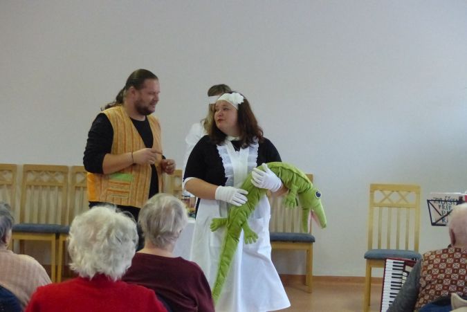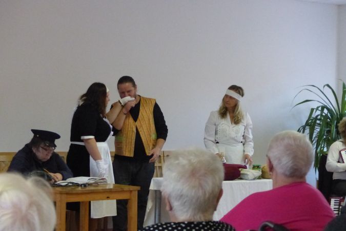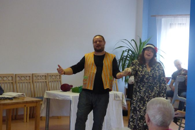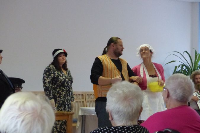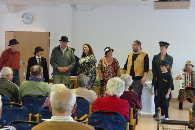 Nedělní odpoledne 24. 10. 2021 nám do domova pro seniory přišli zpestřit ochotníci divadelního souboru Kvítko z Mladoňovic. Nebyli u nás poprvé, a protože jejich vystoupení jsou vždy plná humoru a veselých písniček, nabízelo se samo je opět pozvat.