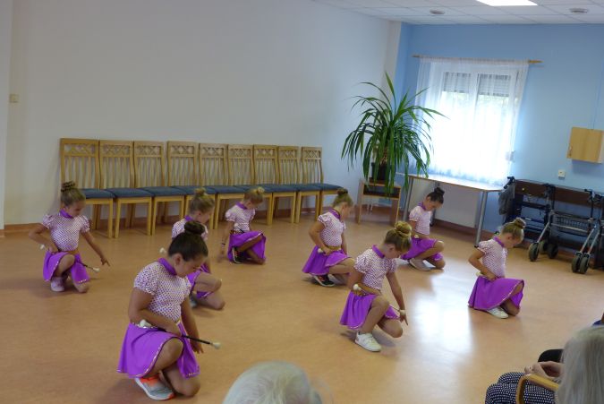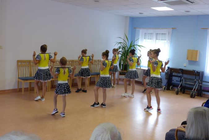 V neděli 11. září, měli naši klienti možnost shlédnout vystoupení mažoretek Meibelin, které k nám zavítaly ze Svinčan. Jelikož nám nepřálo počasí, zatančila nám děvčata v kulturní místnosti. Bylo vidět, že jsou profesionálky a přizpůsobily se i stísněnému prostředí.