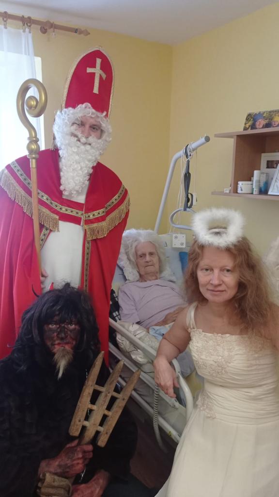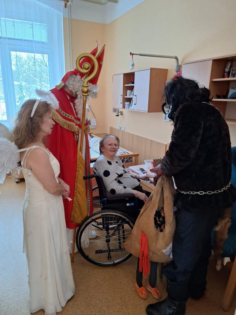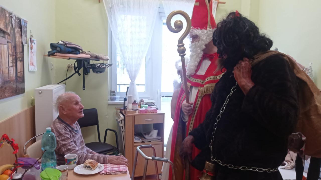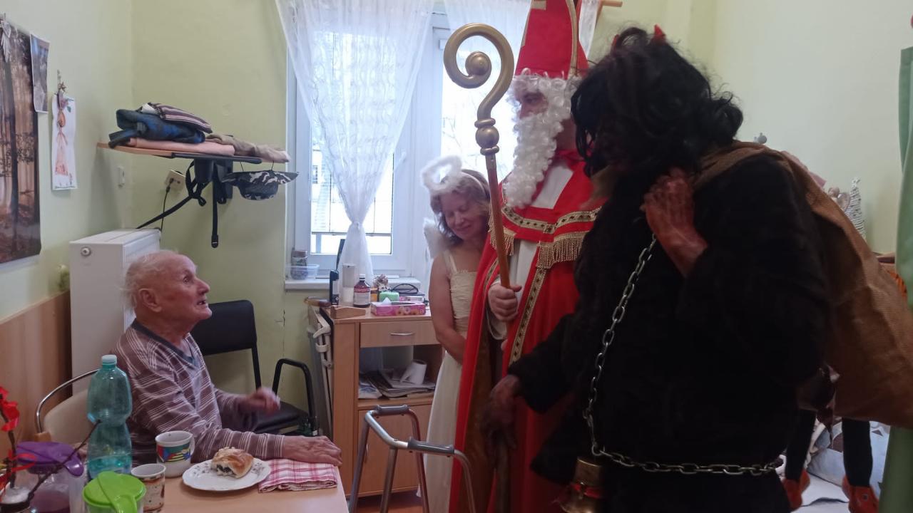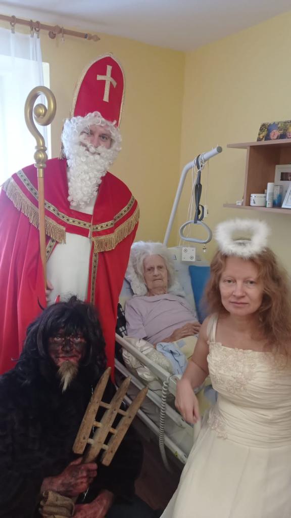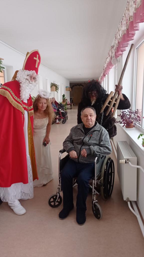 Návštěva Mikuláše, anděla a čerta na pokojích klientů, ale také zastávka na Mikulášské kavárně. Tato trojice vždy vykouzlí úsměv na tvářích našich klientů.