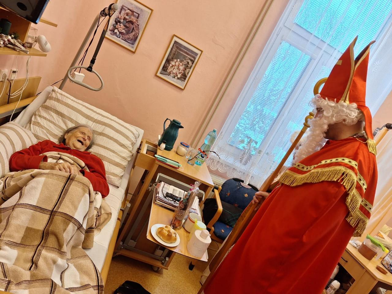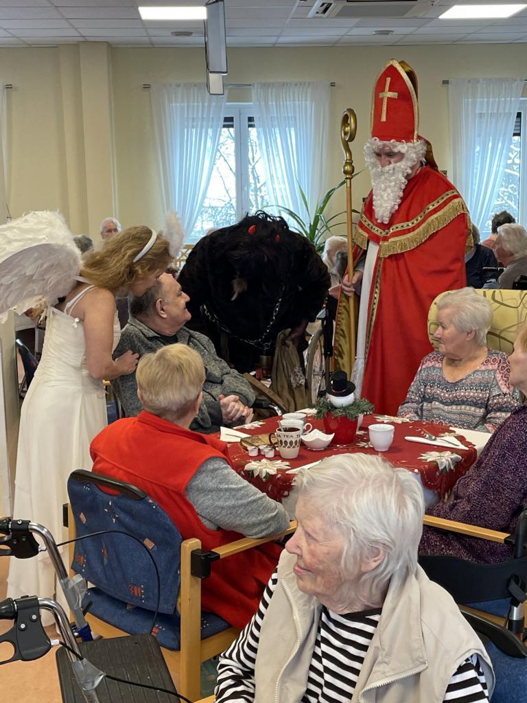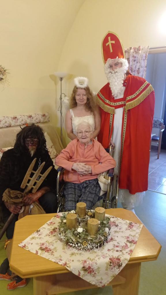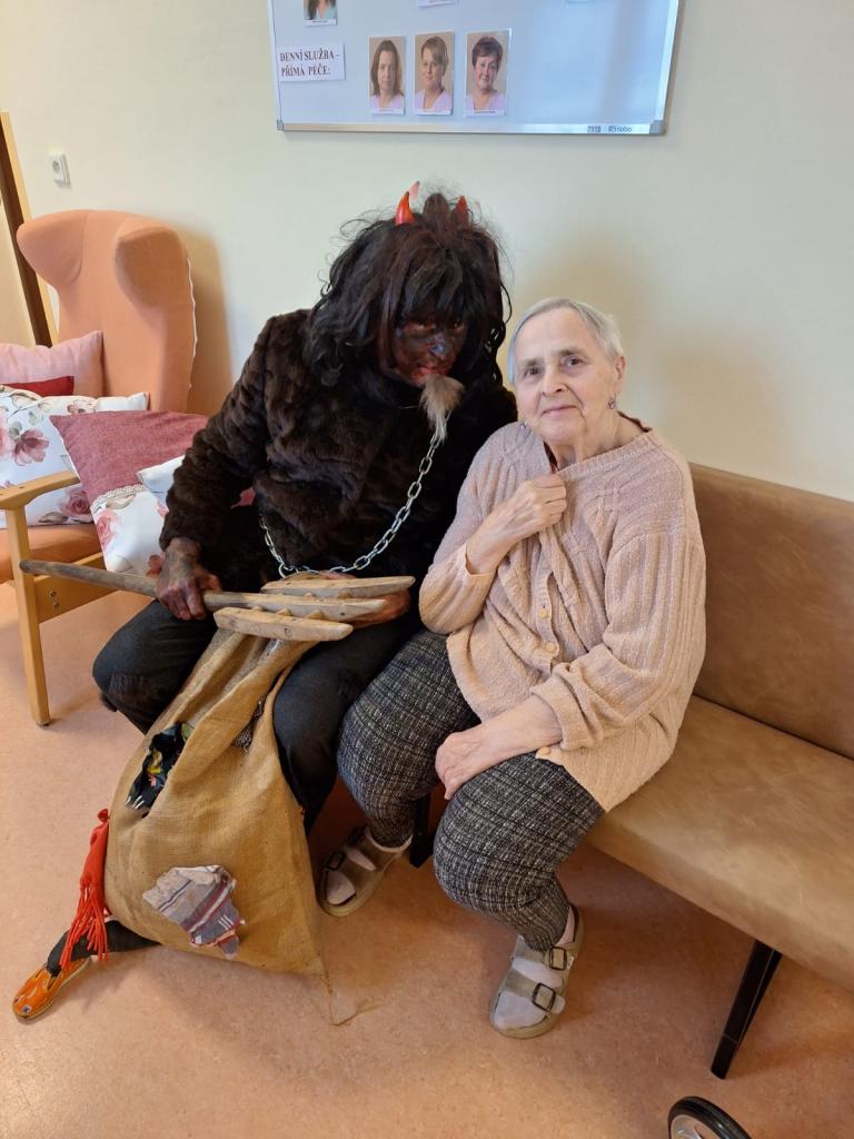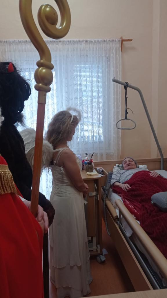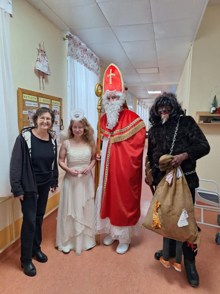 Návštěva Mikuláše, anděla a čerta na pokojích klientů, ale také zastávka na Mikulášské kavárně. Tato trojice vždy vykouzlí úsměv na tvářích našich klientů.