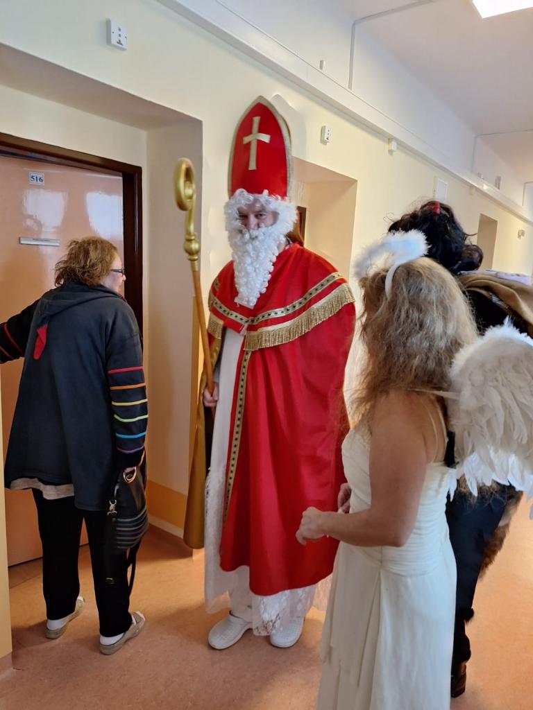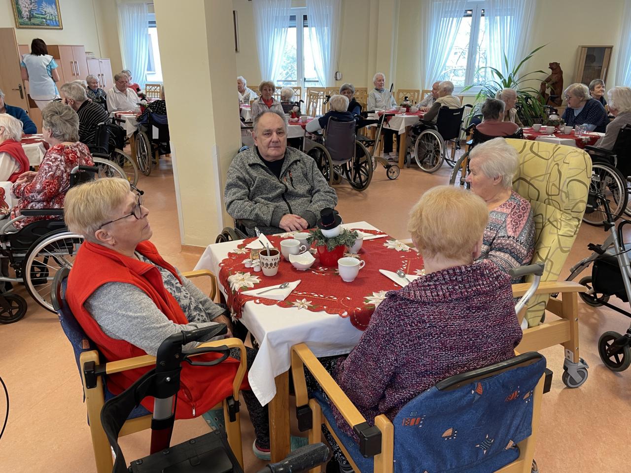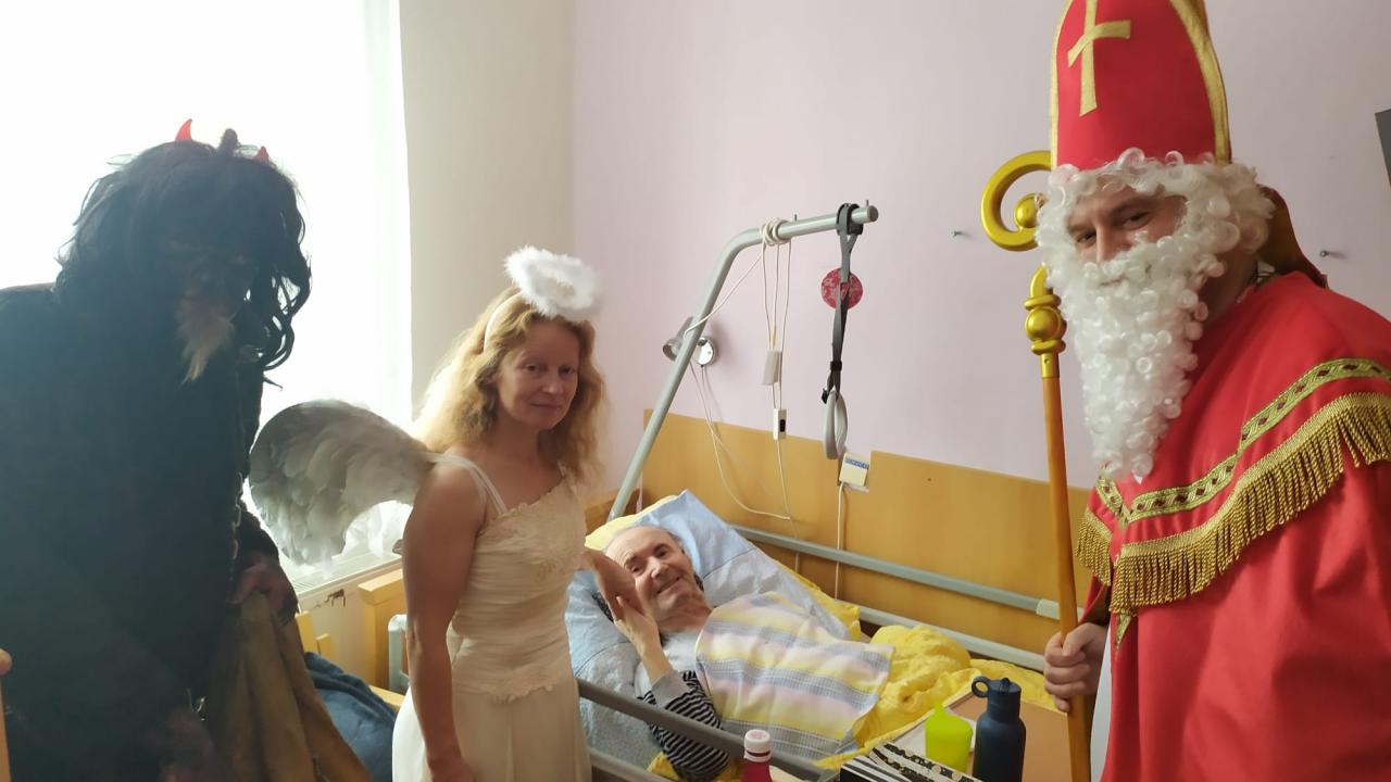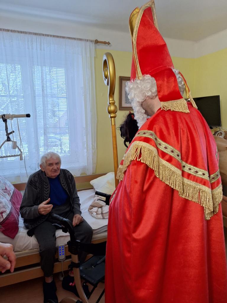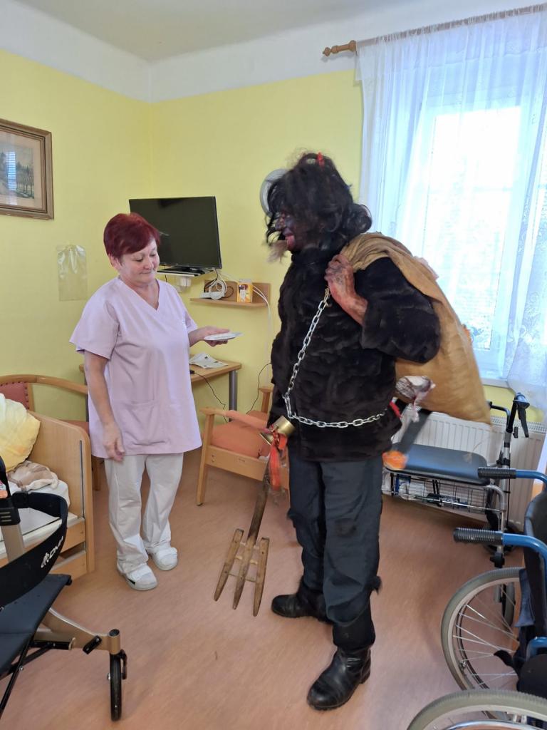 Návštěva Mikuláše, anděla a čerta na pokojích klientů, ale také zastávka na Mikulášské kavárně. Tato trojice vždy vykouzlí úsměv na tvářích našich klientů.