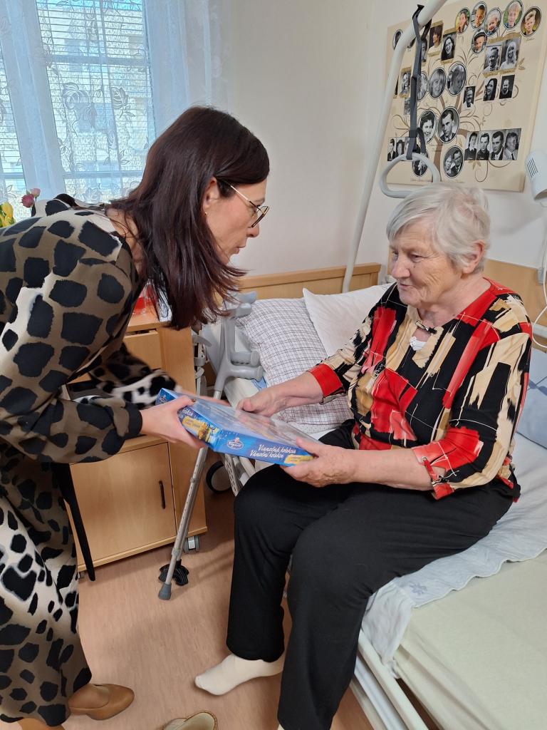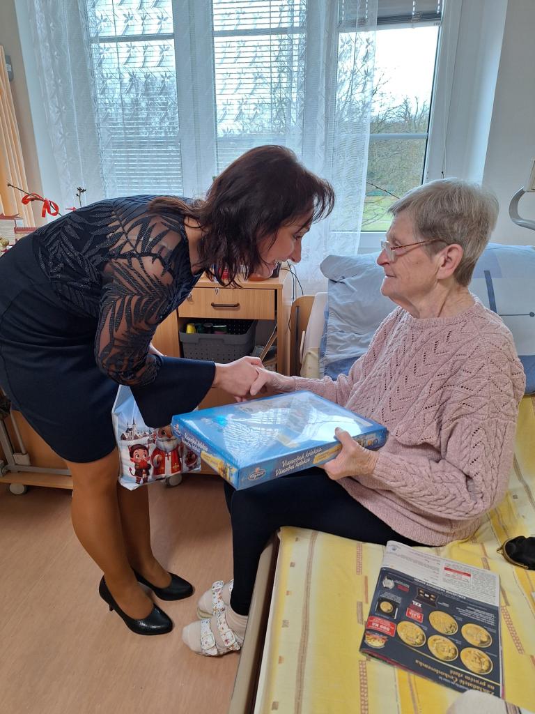 Krásné vánoční svátky dnes popřála naše paní ředitelka všem klientům našeho domova a předala jim vánoční kolekci, na kterou jistě mají spoustu vzpomínek ze svého mládí.