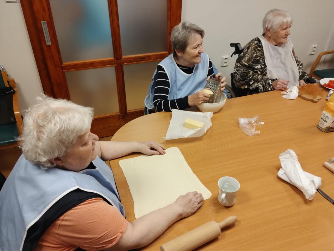 V našem domově se nebojíme zkoušet nové věci, a tak po oslovení jedné klientky jsme v kuchyni zapékaly toasty na způsob pizzy a k tomu jsme si připravily tyčky z listového těsta.