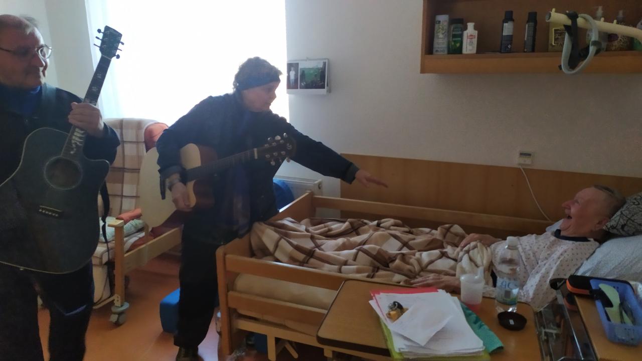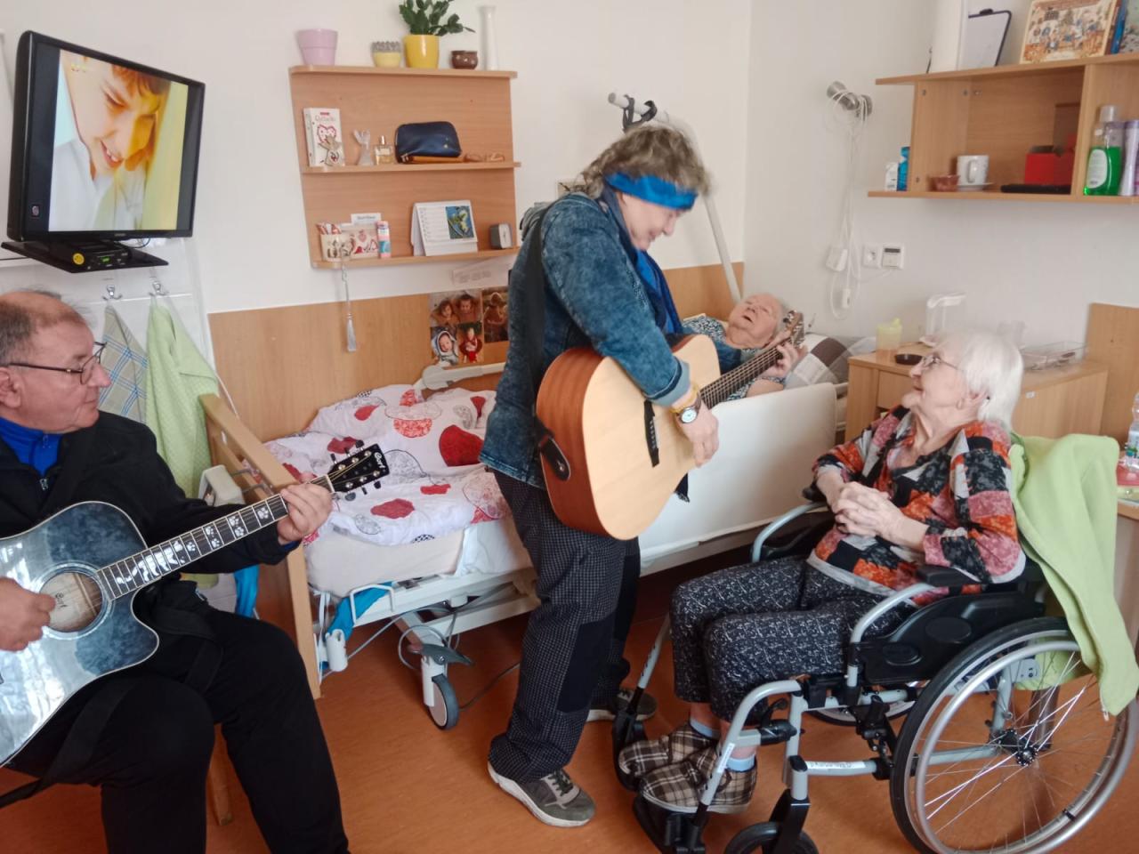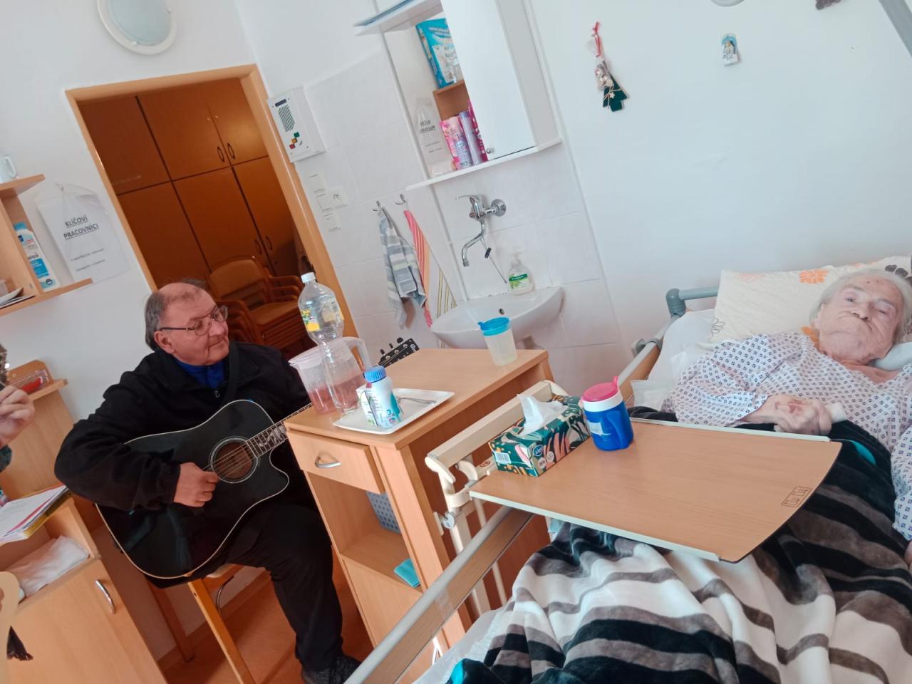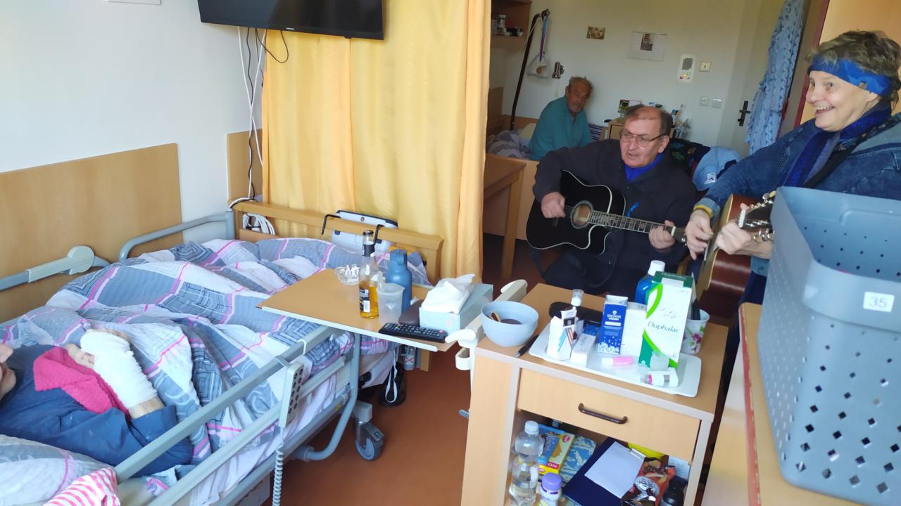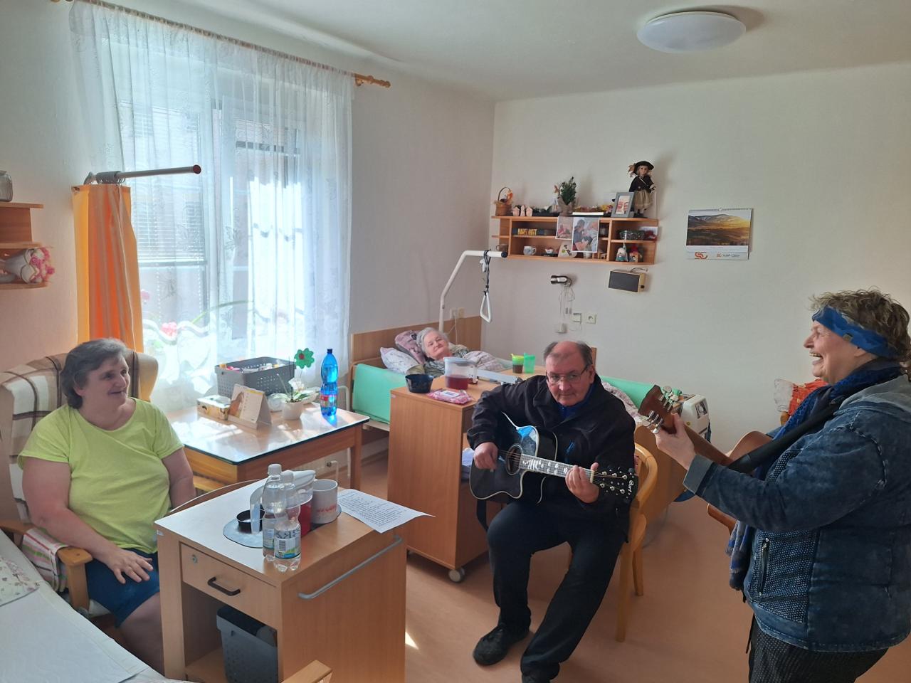 Hudebníky jsme jim tak přivedli přímo do jejich pokojů. Bylo vidět, že prim hrají stále lidové písně, které jim vykouzlily úsměv na rtech a většina z nich si společně s paní Mílou a jejím kolegou zanotovala. I taková krátká návštěva naše klienty velmi potěšila a my paní Míle moc děkujeme.