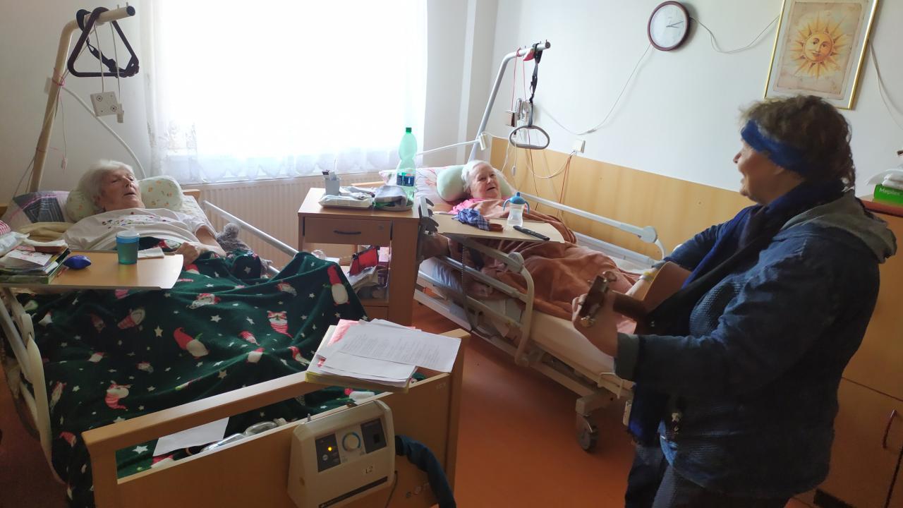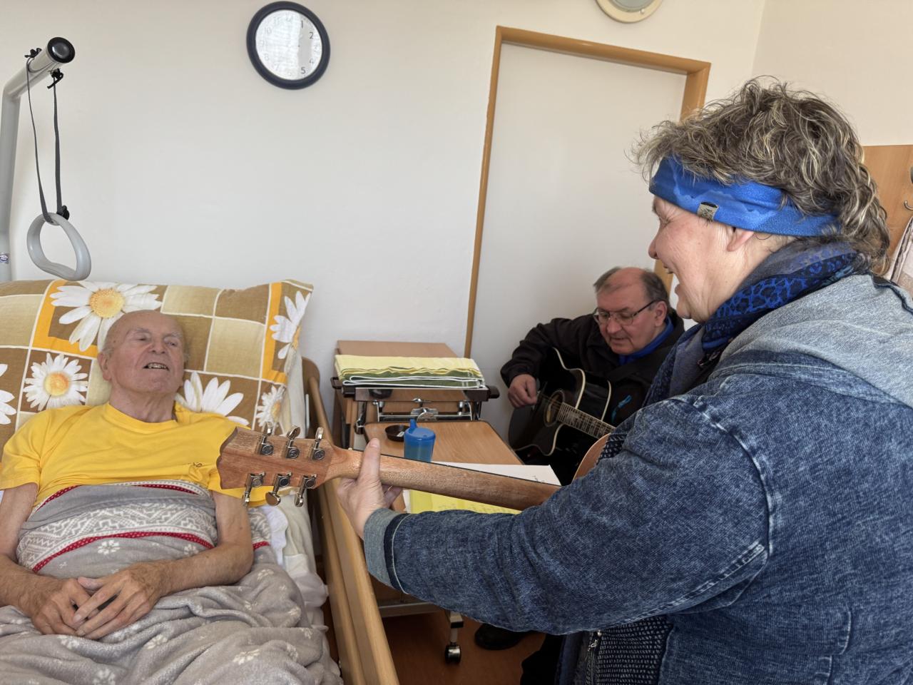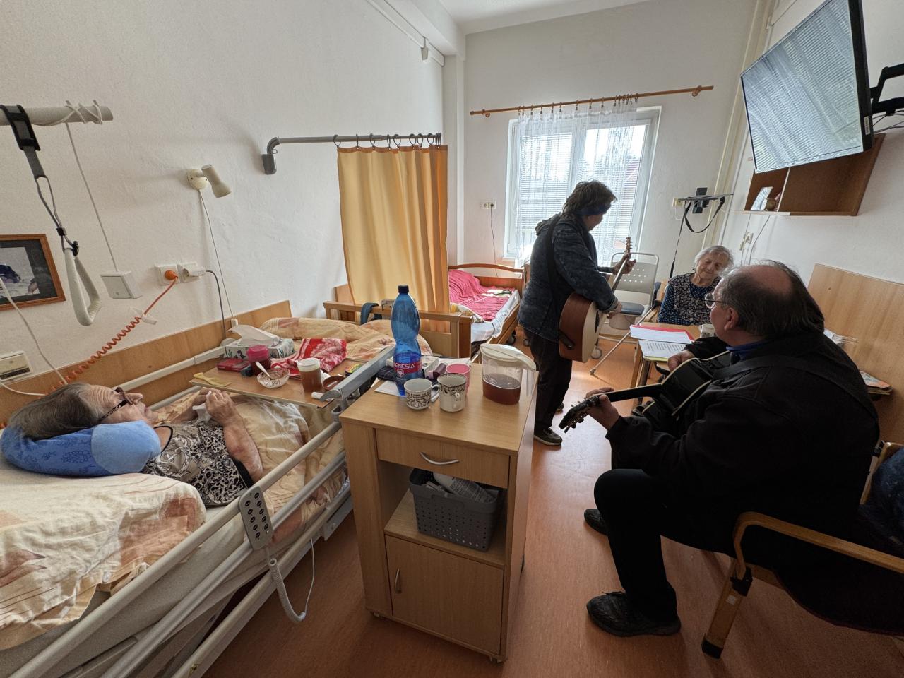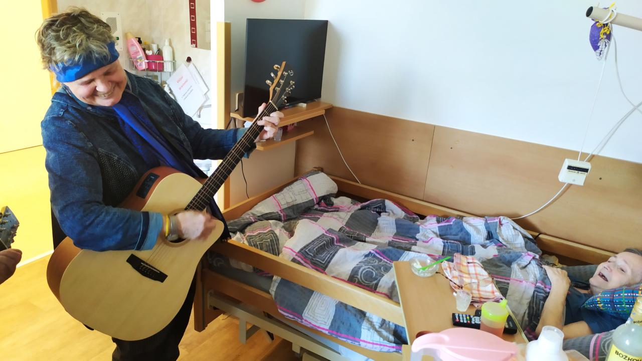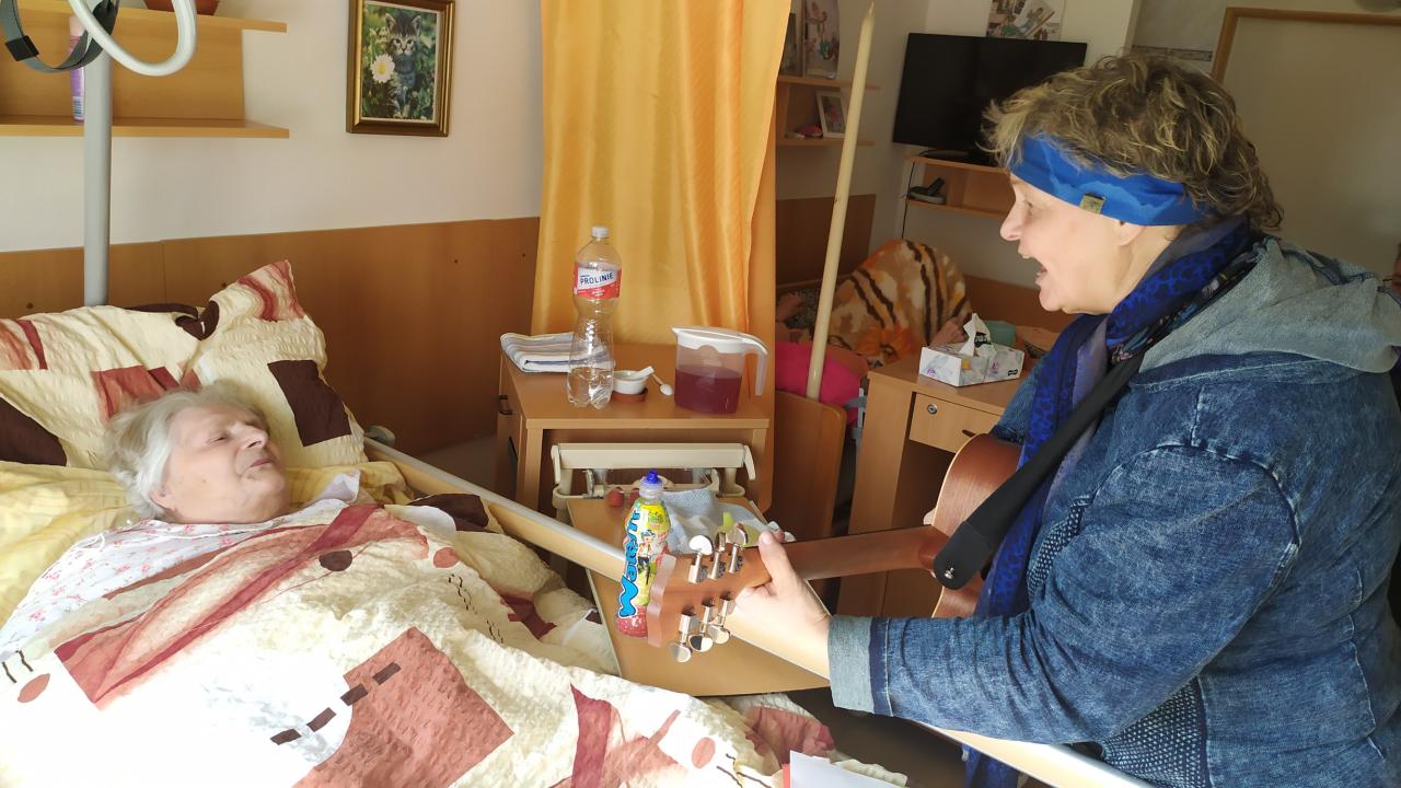 Hudebníky jsme jim tak přivedli přímo do jejich pokojů. Bylo vidět, že prim hrají stále lidové písně, které jim vykouzlily úsměv na rtech a většina z nich si společně s paní Mílou a jejím kolegou zanotovala. I taková krátká návštěva naše klienty velmi potěšila a my paní Míle moc děkujeme.