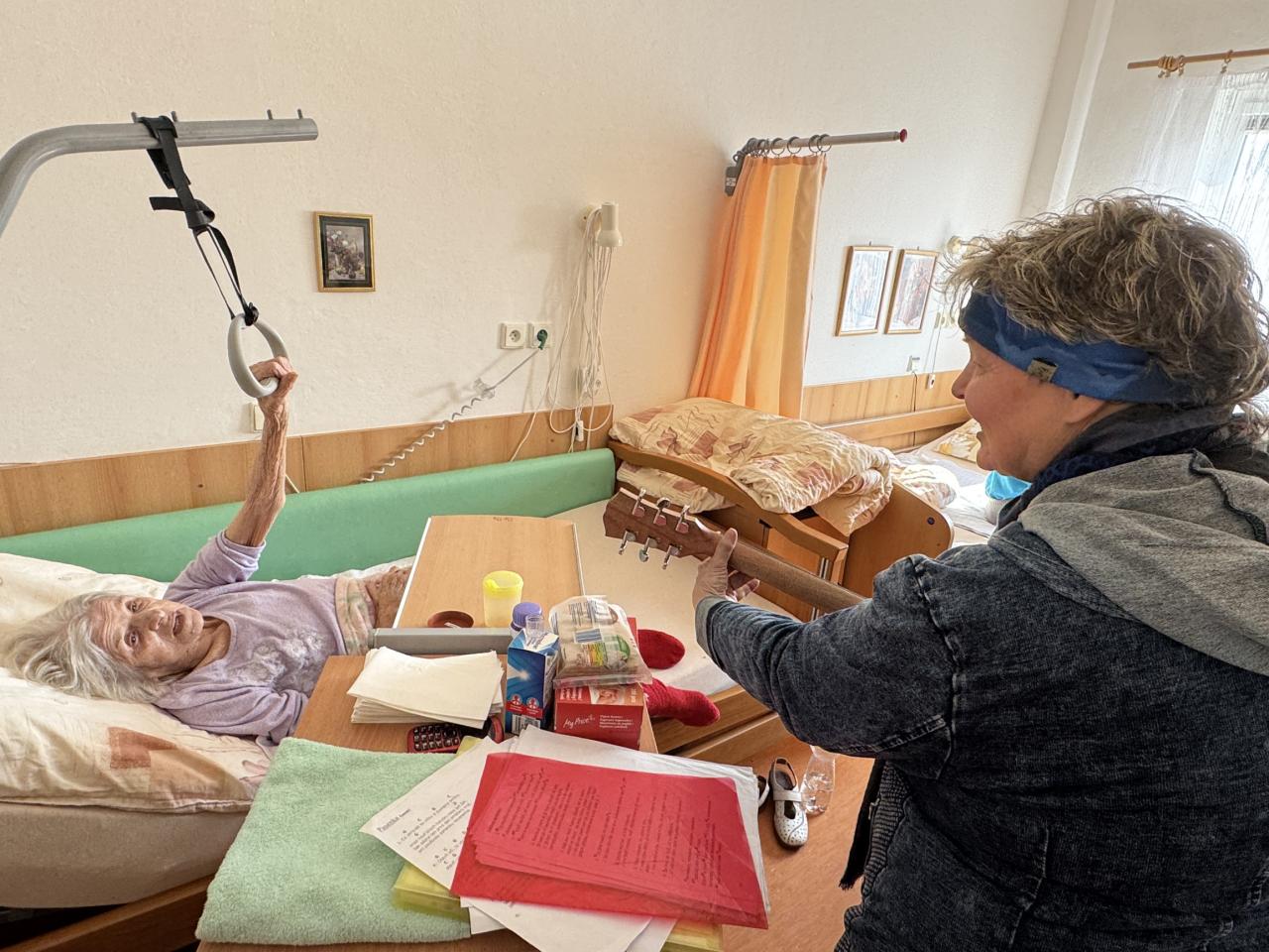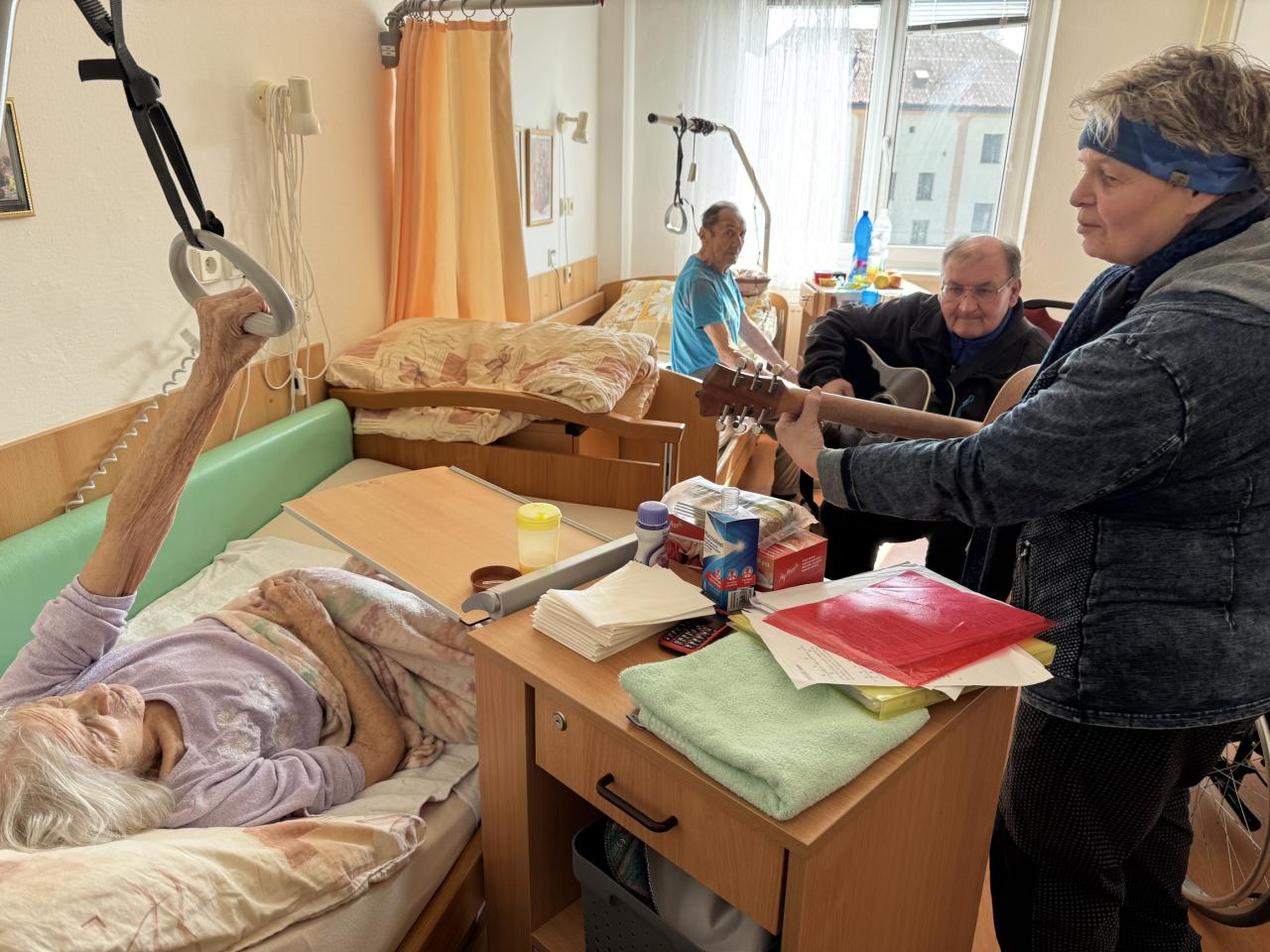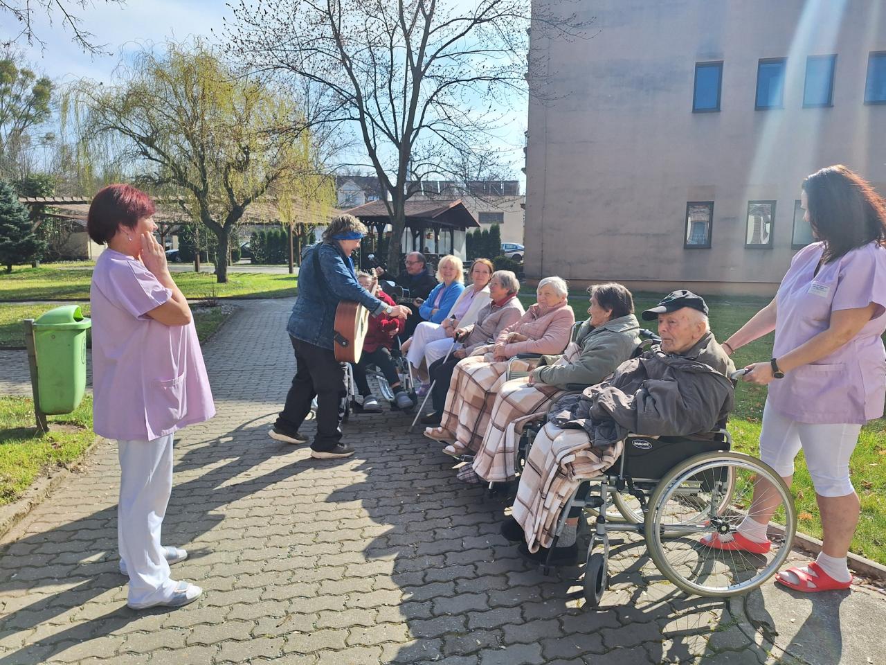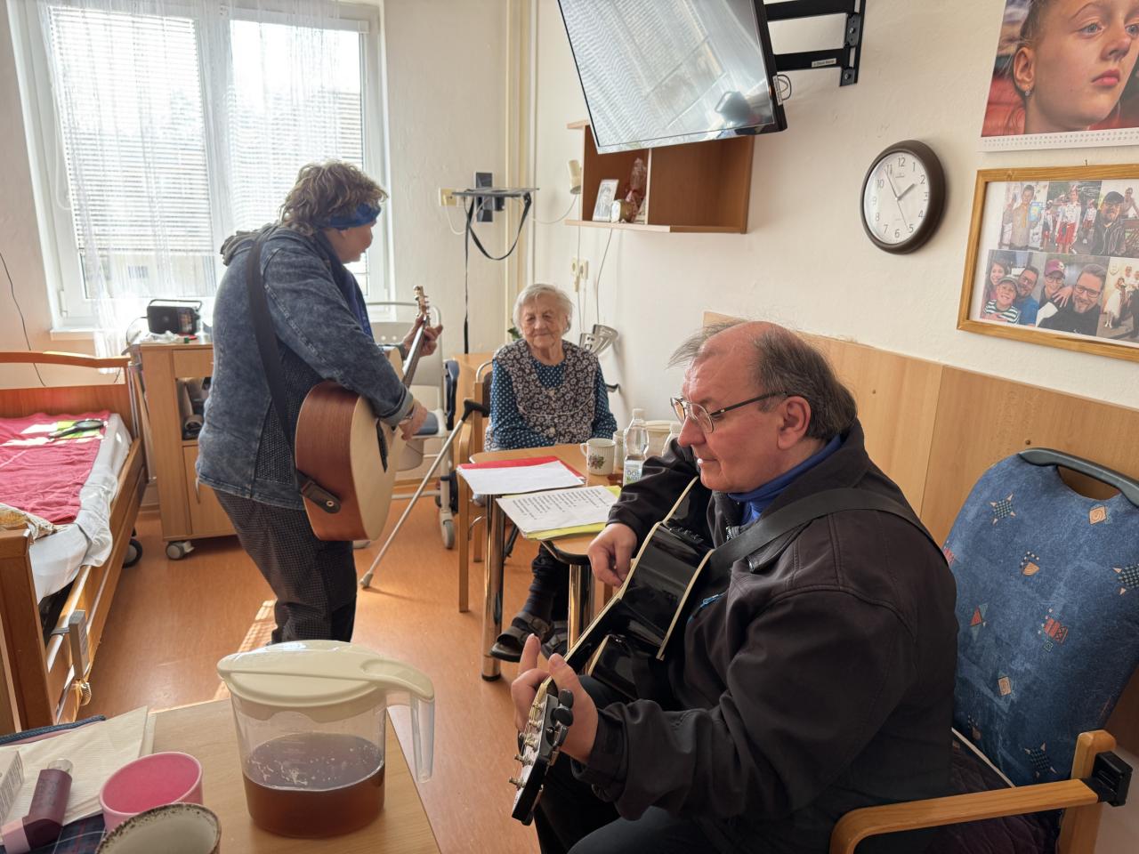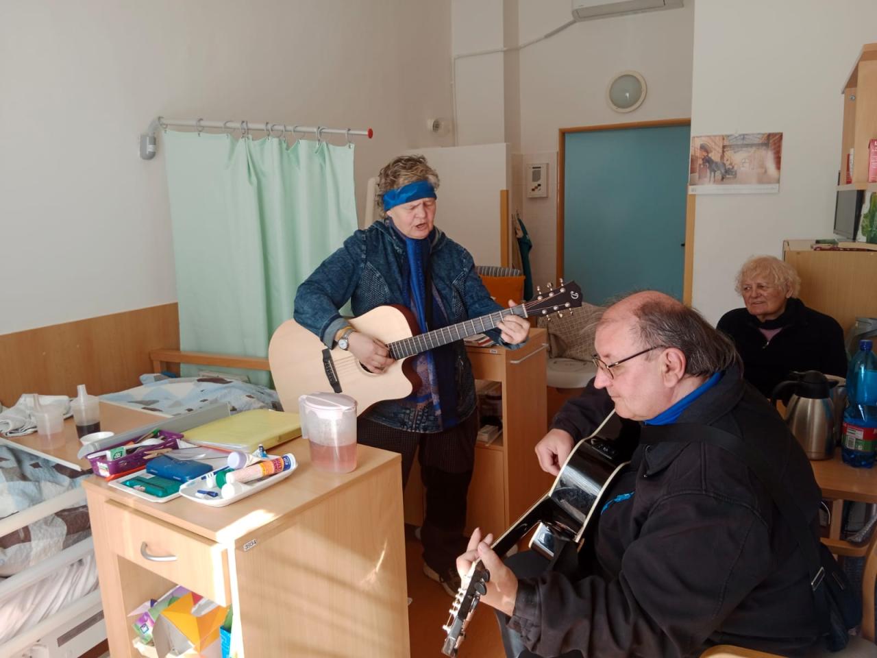 Hudebníky jsme jim tak přivedli přímo do jejich pokojů. Bylo vidět, že prim hrají stále lidové písně, které jim vykouzlily úsměv na rtech a většina z nich si společně s paní Mílou a jejím kolegou zanotovala. I taková krátká návštěva naše klienty velmi potěšila a my paní Míle moc děkujeme.