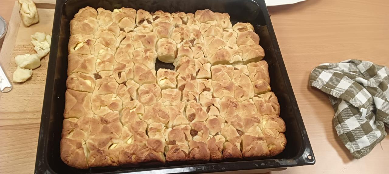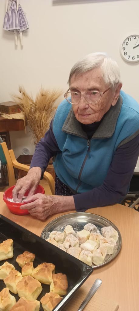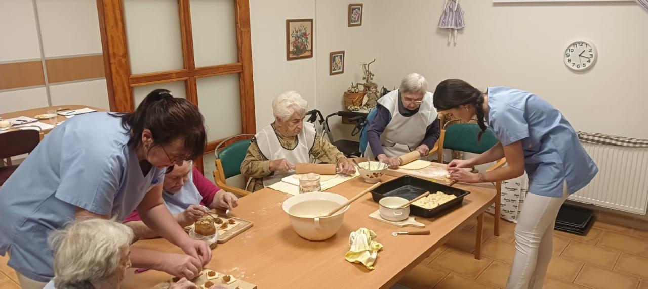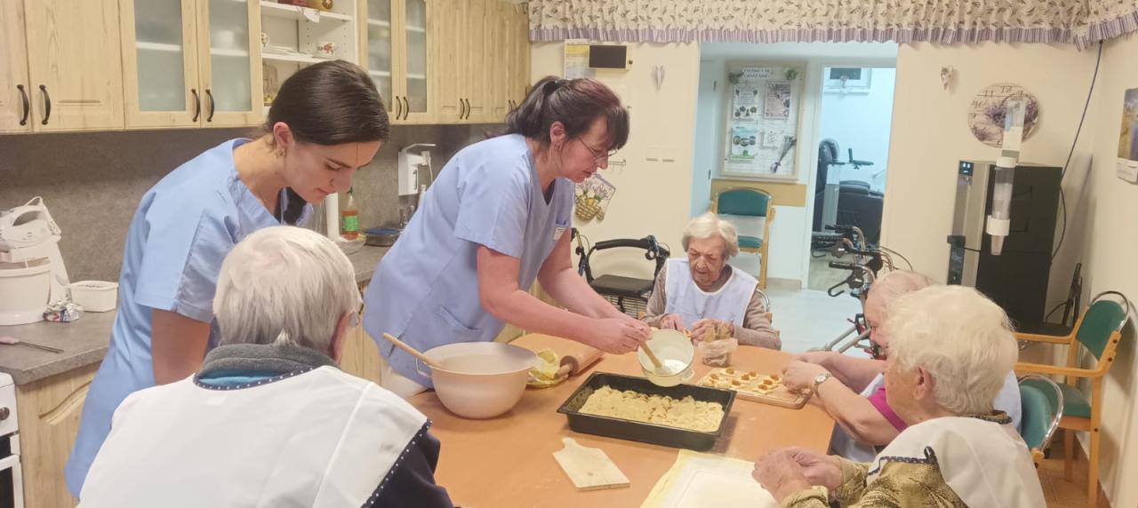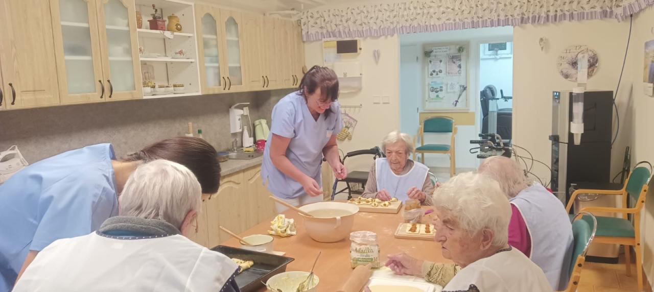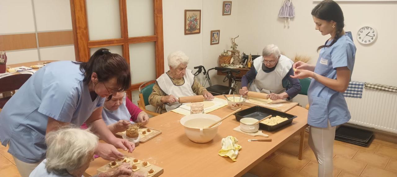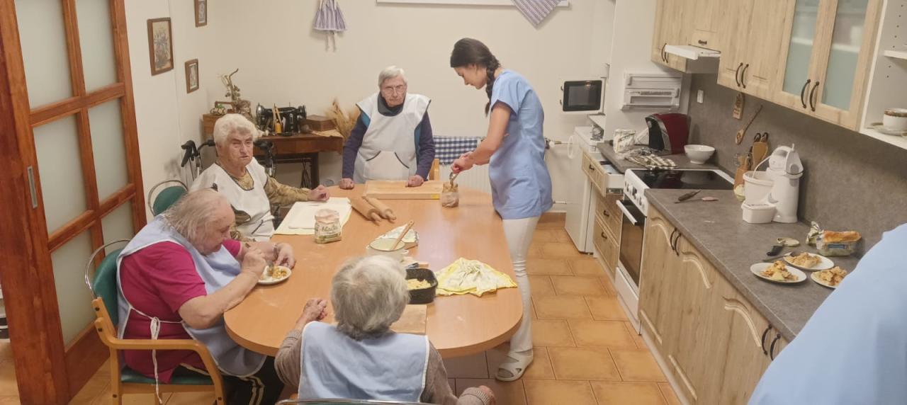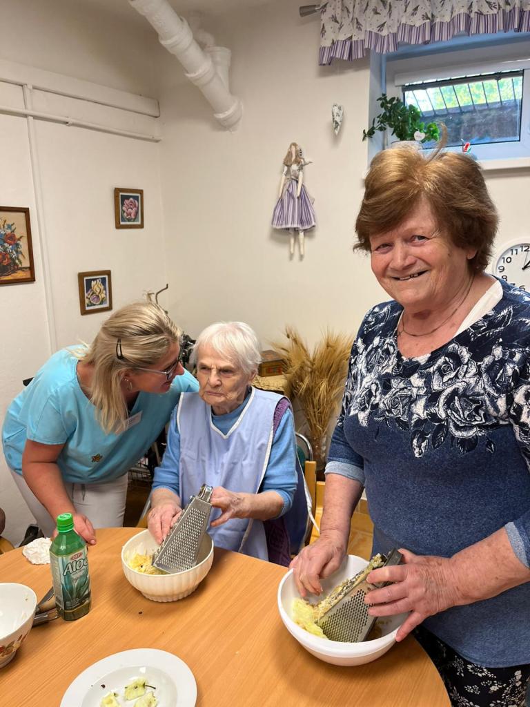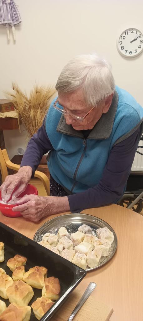 Jablečnou sezónu jsme zahájily štrůdlem, žemlovkou a koláčky s jablečnými povidly a tvarohem. Dokonalost sama a ta krásná vůně po domově... V hlavní roli naše šikovné dámy a aktivizační pracovnice.