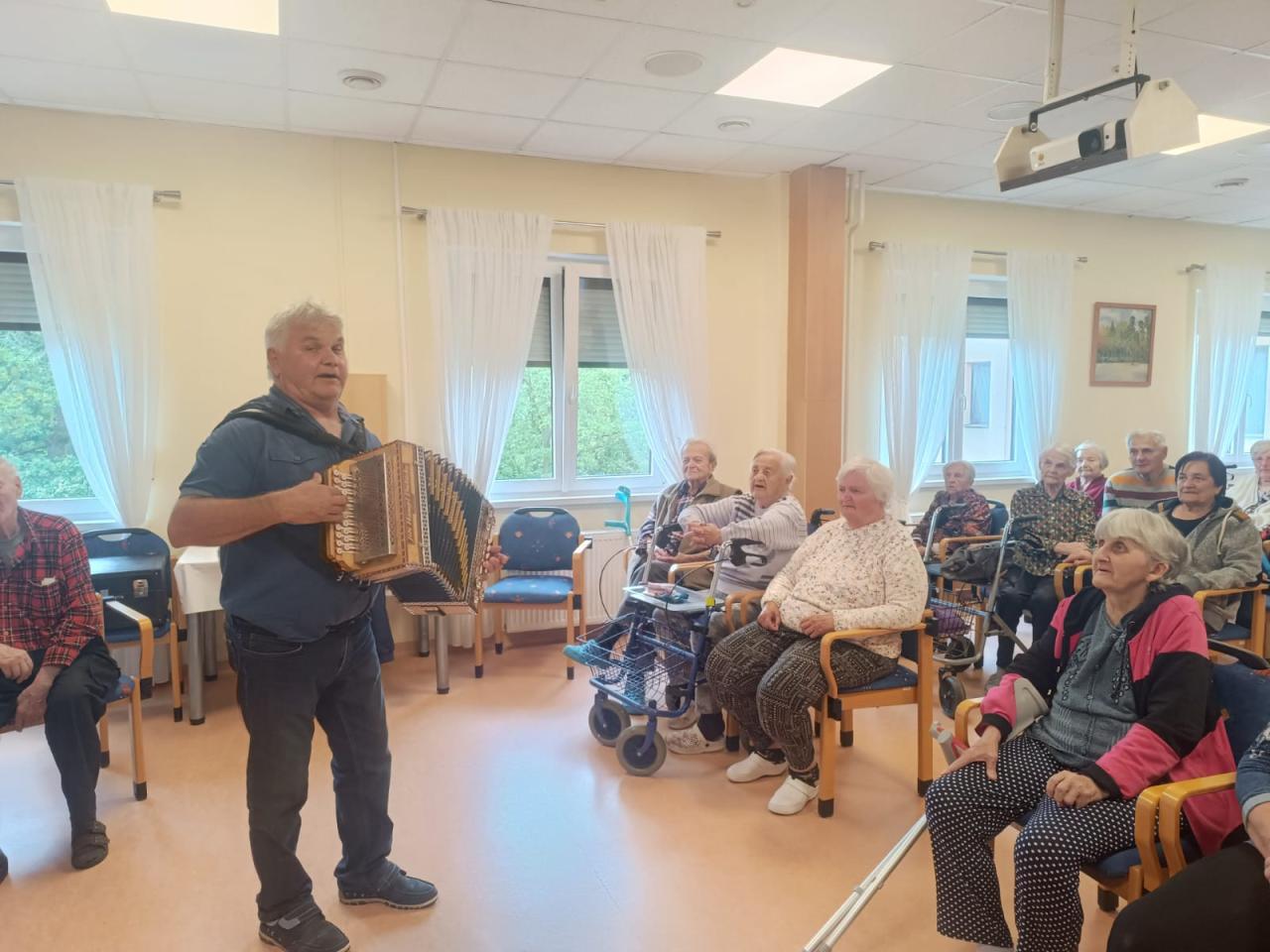 Odpoledne nám zpříjemnil na přání našich klientů oblíbený pan Pecka se svojí harmonikou. Děkujeme