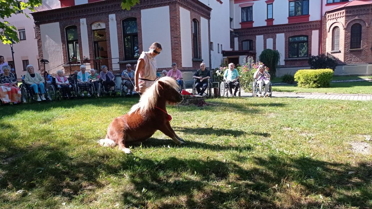 Paní Štumpfová s poníky nám přišla zpestřit odpoledne v zahradě.