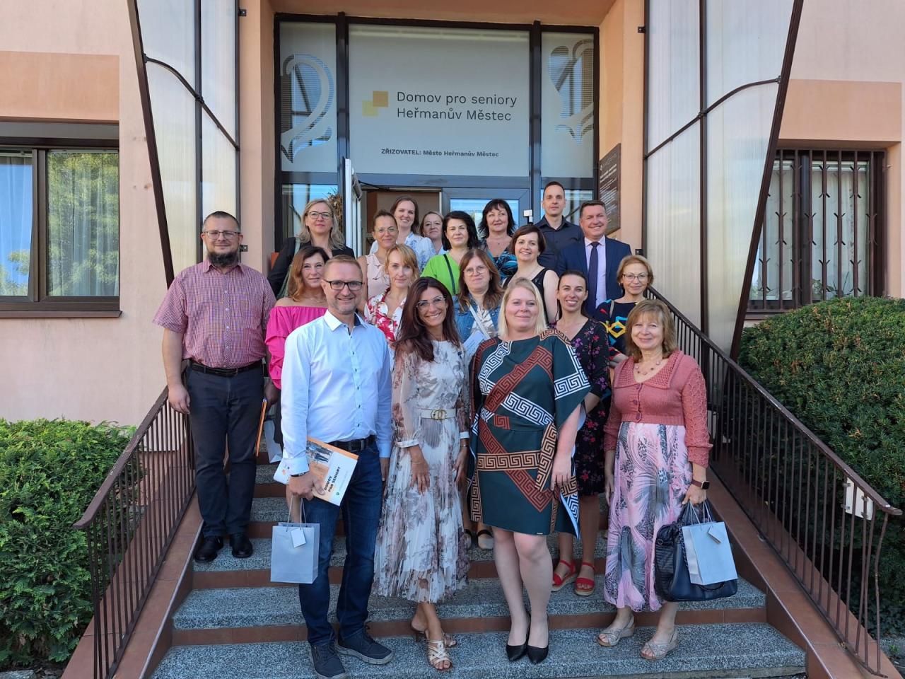 Navštívil nás pan Ing. Pavel Šotola, náměstek hejtmana Pardubického kraje, paní Ing. Helena Zahálková, vedoucí odboru sociálních věcí Pardubického kraje, a také delegace zástupců Prešovského samosprávného kraje z odboru sociálních věcí a rodiny. Slavnostní atmosféru setkání podtrhla i účast paní místostarostky Heřmanova Městce Mgr. Zuzany Dvořákové.