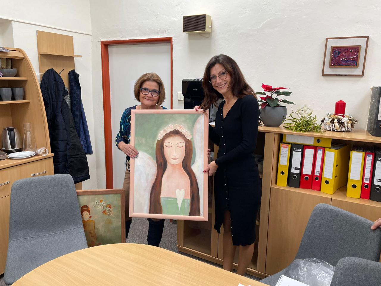 Mgr. Ivana Sodomková darovala našemu domovu dvě autorská díla - dva své obrazy Nevinnost a Podzimní motiv. Oba již zkrášlují prostory našeho domova. Moc děkujeme za krásný dar.