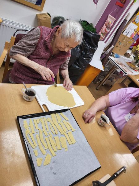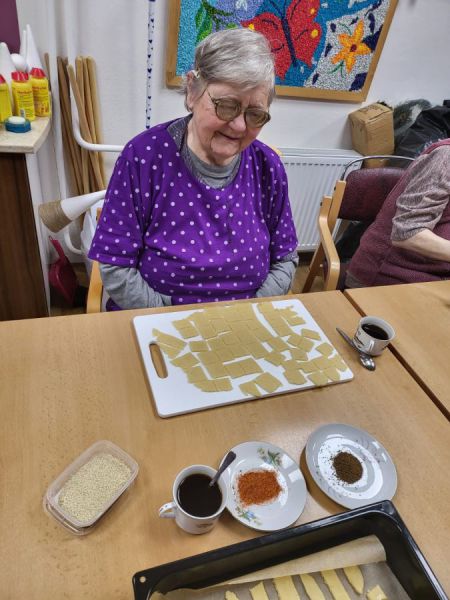 Pečení, vaření jsou jedny z nejběžnějších činností, které našim klientům vždy udělají radost, když se do těchto aktivit mohou zapojit. Tentokrát si pekli slané pečivo.