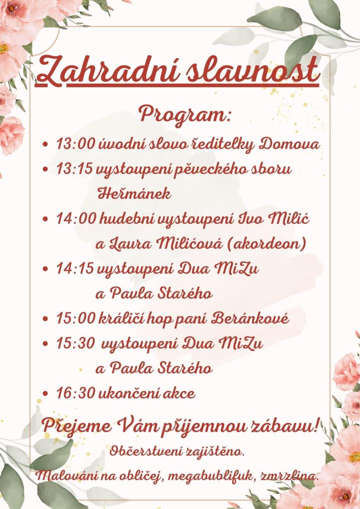 Aktuality - Program Zahradní slavnosti a parkoviště pro návštěvníky